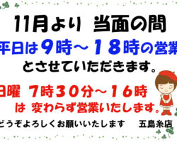 皆さんこんにちは🧶 いつも当店をご利用いただきまして 誠にありがとうございます( * ´ ω ` * ) 11月より しばらくの間、勝手ながら 平日の営業時間を変更させて頂きます😌 営業時…