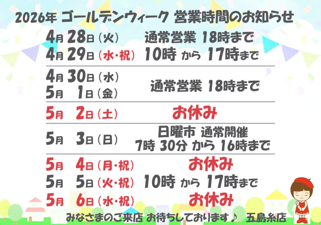 R8年 ゴールデンウィークの営業予定のお知らせです♪